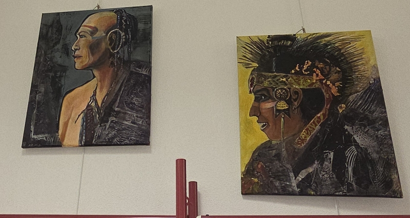 Dans la récente exposition « Autochtones » donnée à la médiathèque, peintures, illustrations et objets insolites, ont amené les visiteurs à entrevoir la richesse de ces cultures.