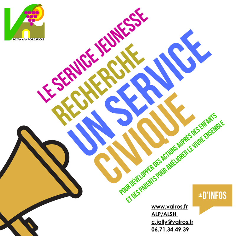 INFORMATIONS ET CANDIDATURE : Auprès de Cécile Jolly, Directrice ALP-ALSH au 06 71 34 49 39 ou c.jolly@valros.fr